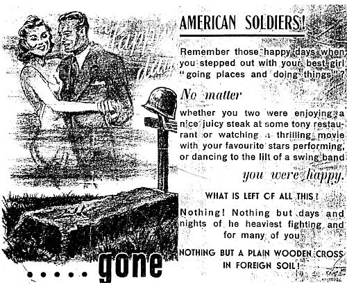 They also tried to scare the Allied troops into thinking their cause was hopeless, or that they were surely going to end up in a coffin. But our men knew what they were there for, and weren't going to be intimidated by hackneyed German Propaganda.