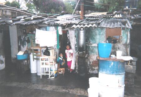 Families live in communities where the homes are attached to each other. Most are made of tin and they are roughly 150 square feet.